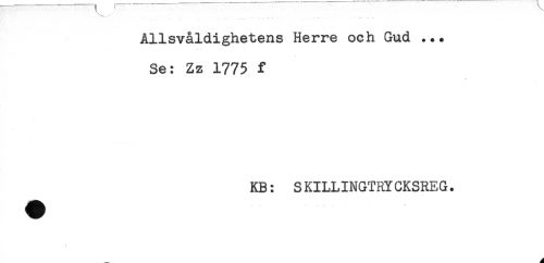 //// Allsvåldighetens Herre och Gud ... //// Se: Zz 1775 f //// KB: SKILLINGTRYCKSREG. ////