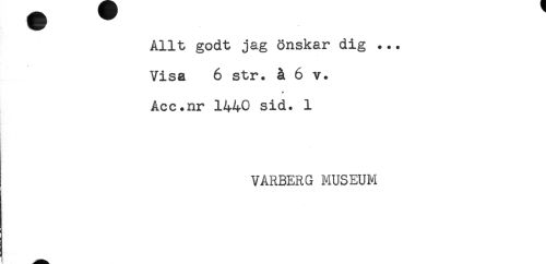 //// Allt godt jag önskar dig ... //// Visa 6 str. å 6 v. //// Acc.nr 1440 sid. 1 //// * //// VÅRBERG MUSEUM ////