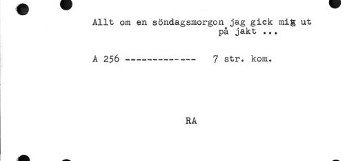 //// Allt om en söndagsmorgon jag gick mig ut //// på jakt .*. //// A 256---— 7 str. kom. //// RA ////