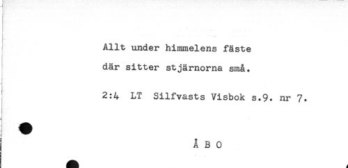 //// - t //// ; //// { - . . -.-.*.-..-- //// Allt under himmelens fäste //// där sitter stjärnorna små. //// i //// i //// ) //// 2:4 LT Silfvasts Visbok s.9. nr 7. //// < ////
