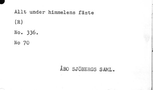 //// Allt under himmelens fäste //// (R) //// No. 336. //// No 70 //// i //// $ //// ÅBO SJÖBERGS SAML. //// ^ it ////