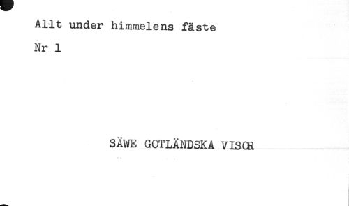//// Allt under himmelens fäste //// Nr 1 //// SÄWE GOTLÄNDSKA VISCR ////