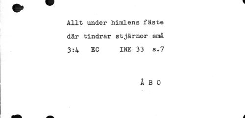 //// Allt under himlens fäste //// där tindrar stjärnor små //// 3:4 EC INE 33 s.7 //// ÅBO ////