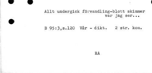 //// Allt undergick förvandling-blott skimmer //// var jag ser... //// B 95:3,s.120 Vår - dikt. 2 str. kom. //// t //// RA //// Båt ? ////