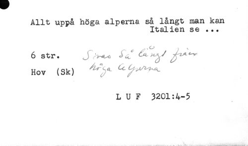 //// Allt uppå höga alperna så långt man kan //// Italien se ... //// 6 str. //// Hov (Sk) ^ ^ ^^^ //// L U F 3201:4-5 //// , . ^ . . . _... . ...A ////
