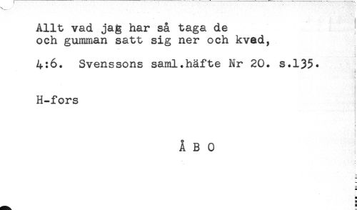 //// Allt vad jag har så taga de //// och gumman satt sig ner och kved, //// ! //// : //// i //// 4:6. Svenssons saml.häfte Nr 20. s.135* //// I //// < //// i //// j //// H-fors ! //// ! //// ) //// } //// i //// ÅBO //// ! //// a ////