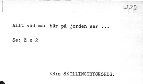 //// Allt vad man här på jorden ser ... //// Se: Z c 2 //// KB:s SKILLINGTRYCKSREG. ////