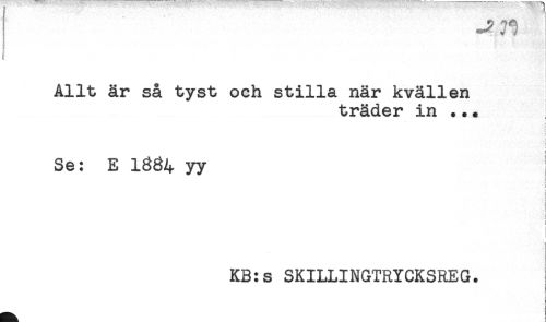 //// Allt är så tyst och stilla när kvällen //// träder in .. //// - //// t //// { //// Se: E 1SS4 yy //// I //// ! //// < //// < //// i //// i //// < //// t //// KB:s SKILLINGTRYCKSREG. ////