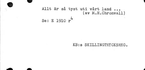 //// Allt är så tyst uti vårt land ... //// (av M.H.Chronvall) //// Se: E 1910 r^ //// KB:s SKILLINGTRYCKSREG. ////