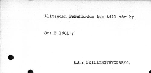 //// K - - //// — --- --- . - — — ..* ^ — ^ _ ^ , //// Alltsedan BeBnhardus kom till vår by //// l Se: E 1301 y //// h //// t //// . //// ! //// ^ KB:s SKILLINGTRYCKSREG. ////