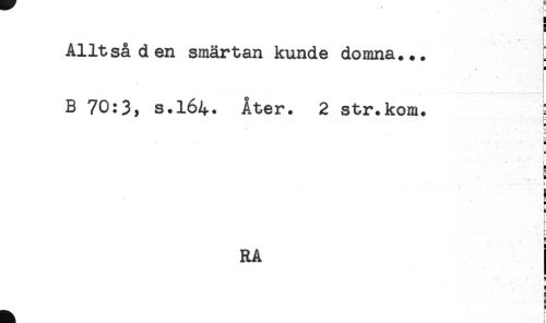 //// < //// -t //// Alltså den smärtan kunde domna... //// B 70:3, S.I64. Åter. 2 str.kom. : //// .. t— //// ä //// ^ //// L //// RA //// g //// g //// * //// É //// E //// H ////