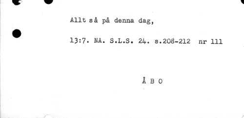 //// Allt så på denna dag, //// F* //// 13:7. NA. S.L.S. 24. s.208-212 nr 111 //// . //// i - //// - //// t //// ÅBO //// - //// i //// K- //// / " //// // . //// /