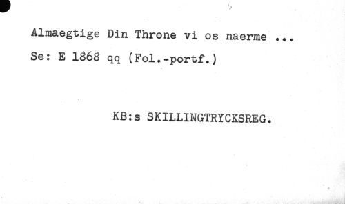 //// Almaegtige Din Throne vi os naerme ... //// Se: E 1868 qq (Fol.-portf.) //// KB:s SKILLINGTRYCKSREG. //// * ' *. * < ////