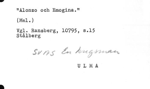 //// "Alonzo och Emogina." //// (Mel.) //// Vgl. Ransberg, 10795, s.15 //// Stålberg //// ULMA ////