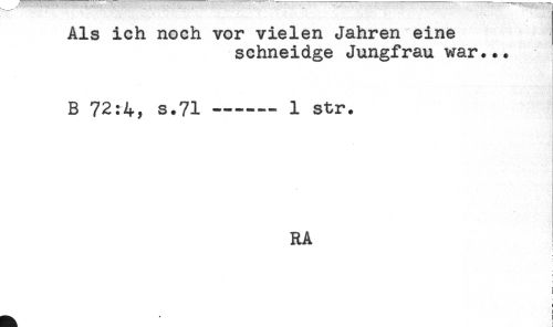 //// AJLS icn nocn vor vie-Len uaaren eme //// schneidge Jungfrau war... //// B 72:4, s.71----— 1 str. //// RA ! //// r //// ' ////