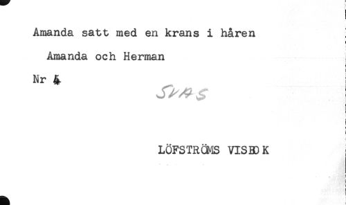 //// Amanda satt med en krans i håren //// Amanda och Herman ^ //// < //// Nr 4 //// ( //// T //// ] //// ' //// i //// LÖFSTRÖ-TS VIS 33 K //// ! //// * * . * * //// ! //// i //// ! //// i //// < ////