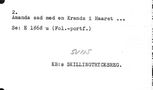 //// 2. [ //// Amanda sad med en Krands i Haaret ... S //// Se: E 1863 u (Fol.-portf.) . //// B //// H //// s //// KB:s SKILLINGTRYCKSREG. i //// H //// } //// = //// = ////