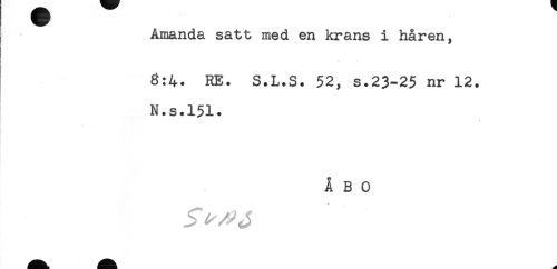 //// Amanda satt med en krans i håren, //// 8:4. RE. S.L.S. 52, s.23-25 nr 12. //// N.s.151. //// ÅBO ////