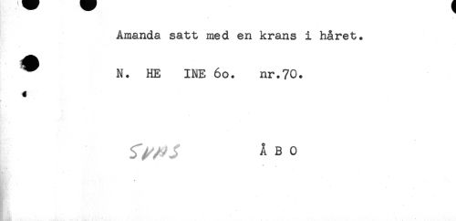 //// Amanda satt med en krans i håret. //// ^ N. HE INE 60. nr.70. //// € //// f^ J ÅBO //// - ////