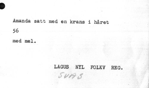 //// Amanda satt med en krans i håret //// 56 //// med mel* //// LAGUS NYL FOLKV REG. //// ) ////