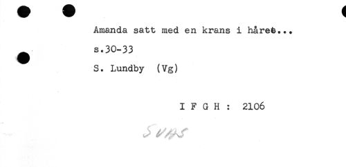 //// Amanda satt med en krans i håret... //// ^ s.30-33 //// S. Lundby (Vg) //// I F G H : 2106 ////