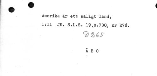 //// Amerika är ett saligt land, //// 1:11 JE. S.L.S. 19,s.730, nr 278. //// ÅBO ////