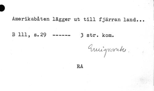 //// Amerikabåten lägger ut till fjärran land... //// B 111, s.29 --- 3 str. kom. //// < //// t //// < //// RA //// - . ////