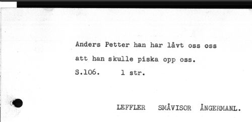 //// ! 4 //// Anders Petter han har låvt oss oss //// ; //// j //// att han skulle piska opp oss. //// i //// S.106. 1 str. //// i //// ! //// ^ LEFFLER SMÅVISOR ÅNGERMANL. //// . ** //// * ////