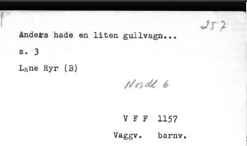 //// Jr? //// Andeips hade en liten gullvagn... //// s. 3 //// Lane Ryr (B) //// ^ ^ j //// V F F 1157 //// t //// t //// Vaggv. barnv. ; //// 5 ////