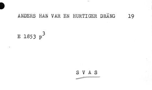 //// ANDERS HAN VAR EN HURTIGER DRÄNG 19 //// E 1853 P^ //// * //// S V A S ////
