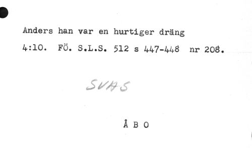 //// Anders han var en hurtiger dräng //// 4:10. FÖ. S.L.S. $12 s 447-443 nr 206. //// < //// i ////