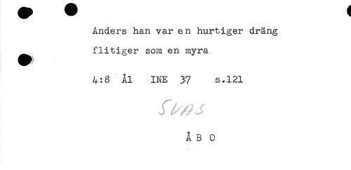 //// Anders han var en hurtiger dräng //// flitiger som en myra //// Ål INE 37 s.121 //// \ r f ////