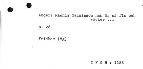 //// Anders Magnis Magniwson han är så fin och //// vacker ... //// s. 28 //// Fridhem (Vg) //// I F G H : 1168 //// . ////