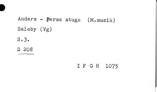 //// Anders - persa stuga (M.musik) //// Saleby (Vg) //// S.3. //// D 208 //// I F G H 1075 ////