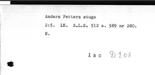 //// t //// ' *** //// Anders Petters stuga //// ^ \ - = - //// ? //// i 2:5. LE. S.L.S. 512 s. 539 nr 280. //// N. //// ? //// ÅBO 'bio ^ ////