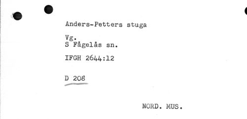 //// Anders-Petters stuga //// Vg. //// S Fågelås sn. //// IFGH 2644:12 //// D 208 //// i //// - //// NORD. MUS. ////