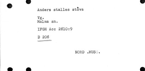 //// Anders ställes stova //// Vg. //// Malma sn. //// IFGH Acc 2810:9 //// D 208 //// NORD .MUS3. //// < ////