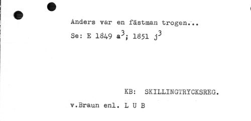 //// Anders var en fästman trogen... //// Se: E 1649 1351 j3 //// KB: SKILLINGTRYCKSREG. //// v.Braun enl. L U B ////