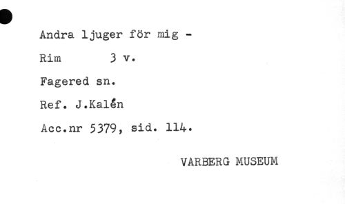 //// Andra ljuger för mig - //// Rim 3 v. //// Fagered sn. //// Ref. J.Kalén //// Acc.nr 5379, sid. 114. //// VARBERG MUSEUM ////