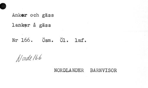//// Ankar och gäss //// lanker å gäss //// Nr 166. Ösm. Öl. lmf. //// NORDLANDER BARNVISOR ////