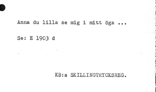 //// Anna du lilla se mig i mitt öga ... //// < //// i //// f //// t //// Se: E 1903 d //// a //// L //// i //// ' E //// i //// KB:s SKILLINGTRYCKSREG. //// i //// H //// ! ////