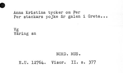 //// Anna Kristina tycker om Per //// Per stackars pojke är galen i Greta... //// \ //// Vg //// Väring sn //// NORD. MUS. //// E.U. 12764. Visor. II. s. 377 ////