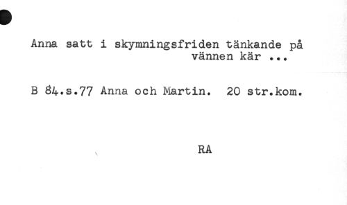 //// Anna satt i skymningsfriden tänkande på //// vännen kär ... //// B 34.S.77 Anna och Martin. 20 str.kom. //// RA ////