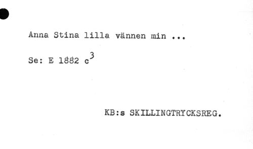 //// Anna Stina lilla vännen min ... //// Se: E 1332 c^ //// KB:s SKILLINGTRYCKSREG. ////