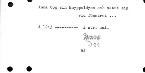 //// Anna tog sm knyppeldyna och satte sig //// I //// ! //// vid fönstret ... //// ! //// A 12:3----- 1 str. mel. //// J% j //// RA ////