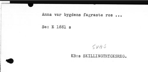 //// * * * * * "* - - - . - //// Anna var bygdens fagraste ros ... //// ! //// t //// Se: E 1881 s //// < //// KB:s SKILLINGTRYCKSREG. ////