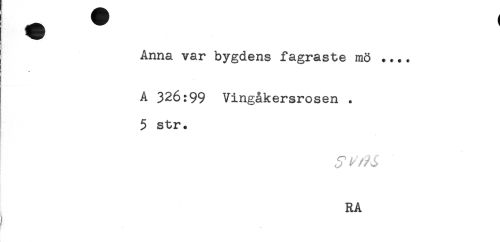 //// t //// Anna var bygdens fagraste mö .... //// * //// } //// A 326:99 Vingåkersrosen . //// 5 str. //// RA ////
