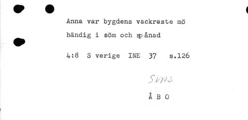 //// Anna var bygdens vackraste mö //// händig i söm och sp anad //// ^Ht_____ //// 4:8 S verige INE 37 s.126 //// ) ////