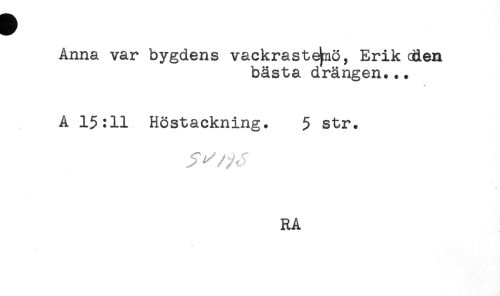 //// Anna var bygdens vackraste^nö, Erik (den //// bästa drängen... //// A 15:11 Höstackning. 5 str. //// RA ////