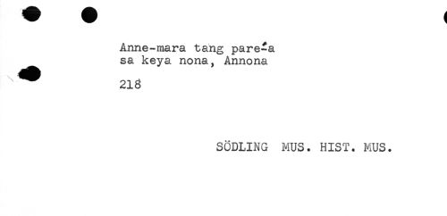 //// Anne-mara tang pare-a //// sa keya nona, Annona //// ^ ^ 218 //// SÖDLING MUS. HIST. MUS. ////